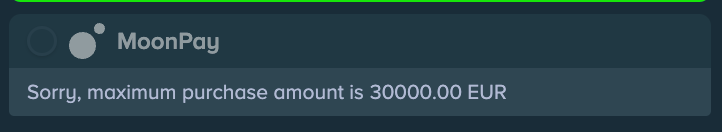 There is also a maximum limit to Stake MoonPay, and it is up to €30,000.00. That means you cannot use this option if the amount you typed in is more than the set limits. It will list MoonPay’s option as greyed out with a note stating ‘Sorry, maximum purchase amount is 30000.00 EUR’.