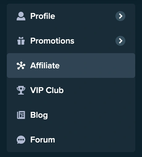 - Once logged in, find the ‘Affiliate’ tab on the left side menu.